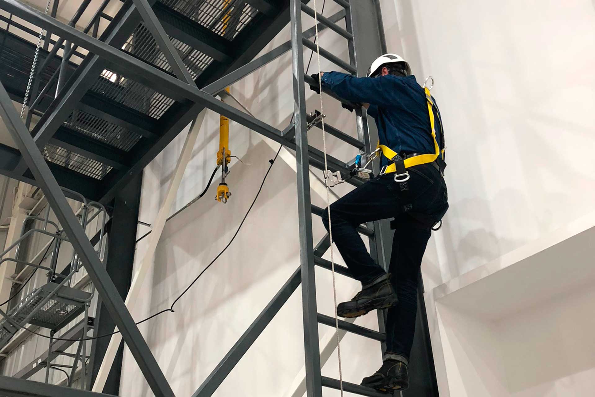 Sistemas de seguridad contra caídas para uso en techos, escaleras marineras y líneas de vida verticales rígidas.